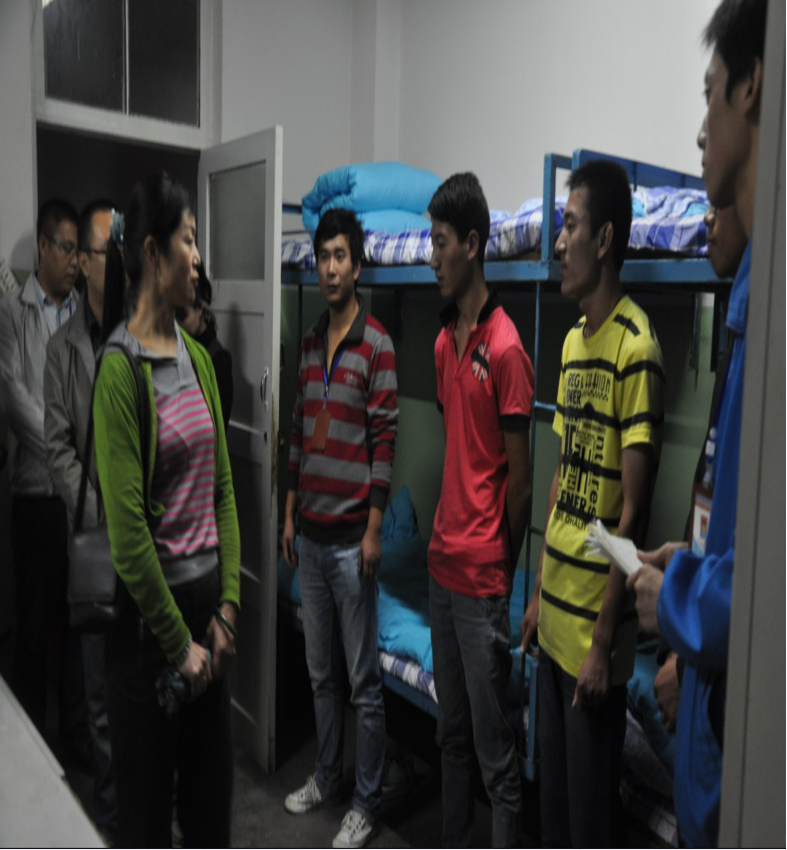 在新生宿舍, 2013级的新生同学们向系领导的关怀表示感谢。我系领导详细询问新生的家在哪里,住宿是否习惯以及到校后的适应情况,鼓励大家尽早熟悉校园环境,完成从中学到大学的角色转变,融入新的集体,全身心投入学习。系领导希望新同学们把握宝贵的学习机会,掌握技能,提高素质,在广阔的平台上奋发努力,成为社会需要的高素质技能人才;同时强调,同学们一定要在大学期间学会自我管理能力。希望同学们能在以后的生活中,提高独立自主的意识。