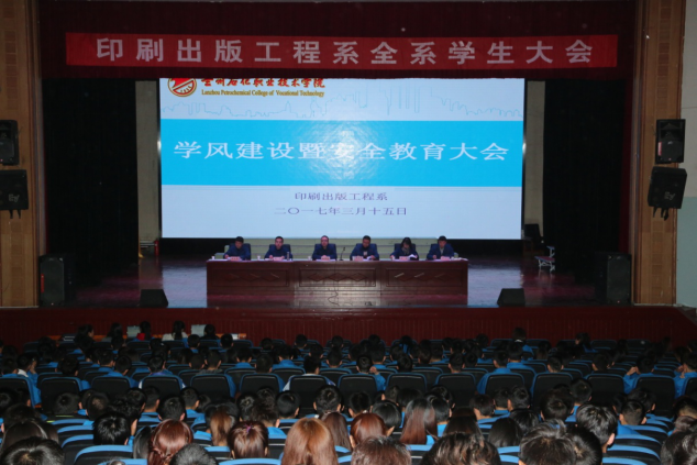 新学期伊始,为进一步加强学风建设,落实员工安全责任,加强教育引导,印刷出版工程系于3月15日晚在公司东区礼堂召开学风建设暨安全教育大会。系领导、班主任及全系在校员工450名员工参加了会议。