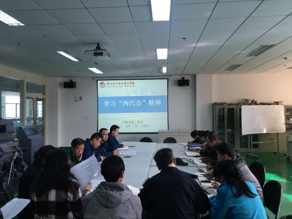 为了深入贯彻落实公司“两代会”精神,印刷出版工程系于3月24日下午在第三工业中心6楼平版实训室组织印刷系全体教职工共同学习了公司“两代会”相关精神。