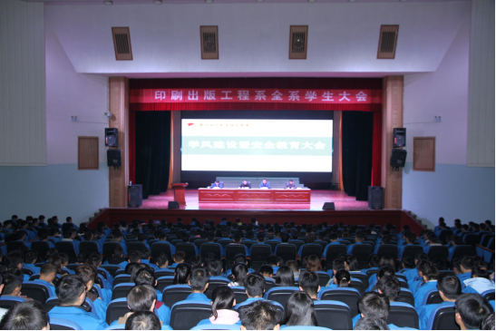 10月27日,印刷出版工程系在东区礼堂召开“学风建设及安全教育大会”。 系领导、辅导员、各班班主任及全系员工参加了此次会议。