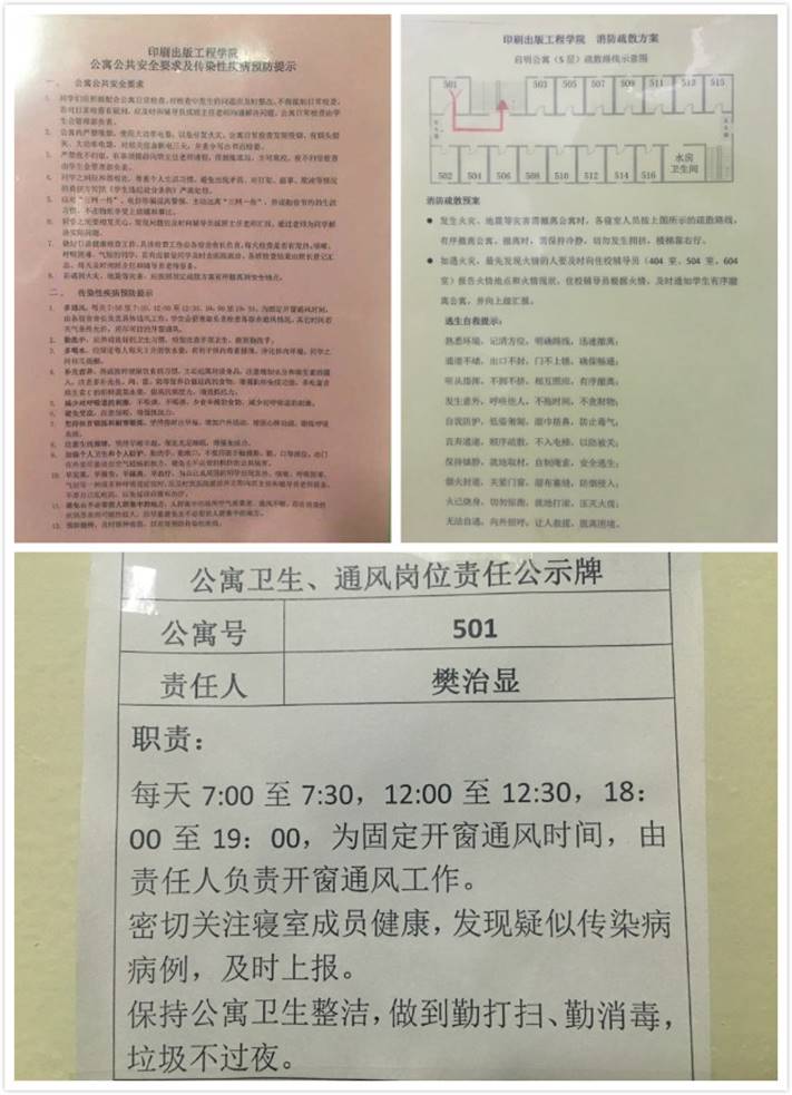 为了增强员工安全避险能力,提高预防传染性疾病意识,印刷出版工程公司根据公司员工工作会议精神的要求,近期在员工公寓通过张贴消防通道示意图、传染性疾病预防提示和公寓卫生、通风岗位责任公示牌等措施,开展了一系列活动,为员工安全保驾护航。