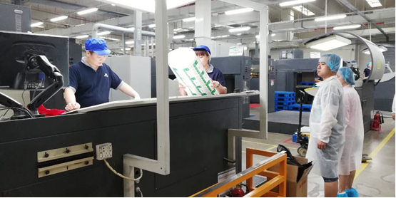 2018年7月19日,在天津中荣印刷集团相关负责人的带领下,印刷出版工程公司领导班子与印刷技术教研室全体教师按照企业生产车间要求,正规着装,参观并学习中荣印刷集团印前设计与制版、印刷生产、印后加工的先进生产设备,并与企业师傅进行技术交流,积极开展技术学习,认识并学习先进的印前制版机与操作流程。