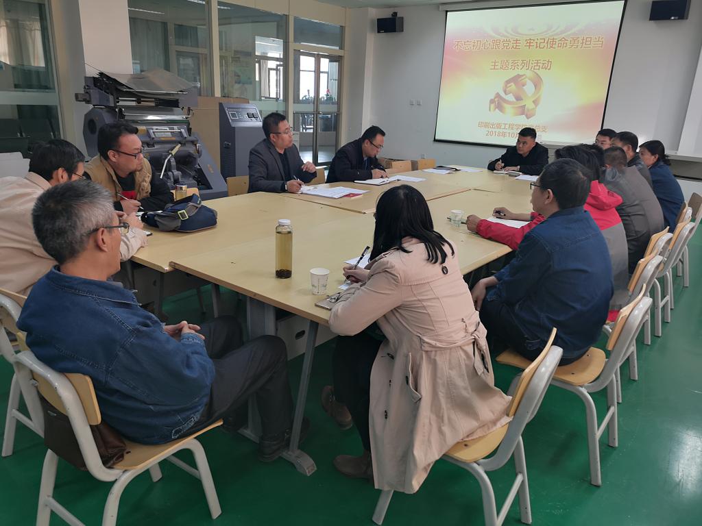 根据公司重点工作安排,10月23日下午,印刷出版工程公司组织全体教职工在第三工业中心六楼开展集体学习活动,重点学习了公司第五版《制度汇编》,并对内审工作、全国文明校园创建工作、“不忘初心跟党走 牢记使命勇担当”主题系列活动进行了部署安排。