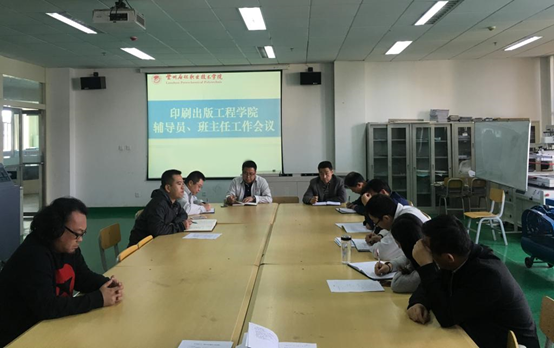 4月16日下午,印刷出版工程公司组织班主任、辅导员在第三工业中心六楼印刷工艺实训室召开“创建优良学风示范班级、标兵宿舍活动”专项工作部署工作会。