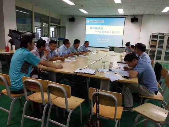 首先,印刷公司负责人向公司荣获从教30年荣誉称号的周登杰、张国祥两位老师和获得第一届教坛新秀的邓军军老师表示祝贺,祝贺他们取得骄人的成绩,也祝全院教师节日快乐,同时感谢印刷公司全体教师为公司的做出的贡献和付出的努力。随后,教师代表围绕师德师风建设、如何提高课堂效率、如何提高公司产品质量进行了座谈。通过座谈,教师们进一步明确了教师职业的光荣感和使命感,提高了对教师职业更深层次的认识。