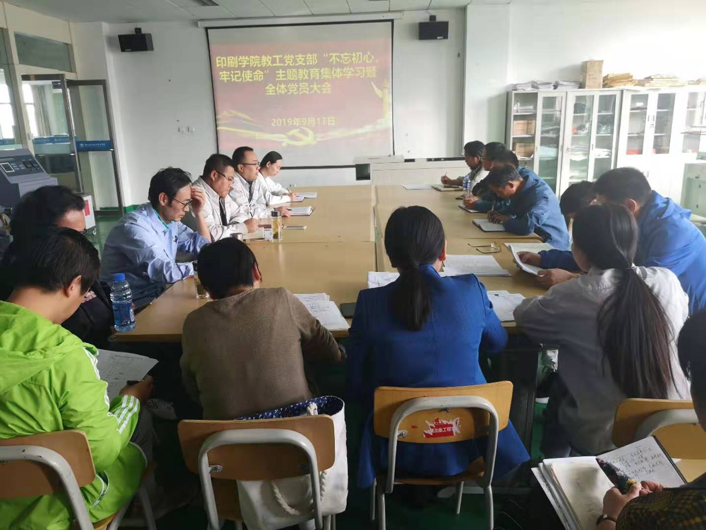 9月17日下午,印刷出版工程公司教工党支部召开全体党员大会,开展“不忘初心,牢记使命”主题教育集体学习活动。