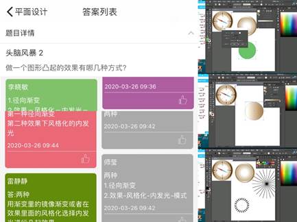 艺术设计教研室刘剑云老师的《构成艺术》课程是大赛的第一课,为了完美呈现第一棒,刘老师课前做了充足的准备。授课当天刘老师提前将腾讯会议邀请码发给员工,并督促员工签到。授课过程中为了充分调动员工的积极性,刘剑云老师通过随机点名或腾讯会议群聊的方式让员工回答问题,员工既可以分享自己的答案,也可以积极展开谈论。课程结束后老师立即在云班课中布置了课堂练习任务并要求员工上传课堂笔记,通过对课后作业的审批来检查员工当天的学习效果。