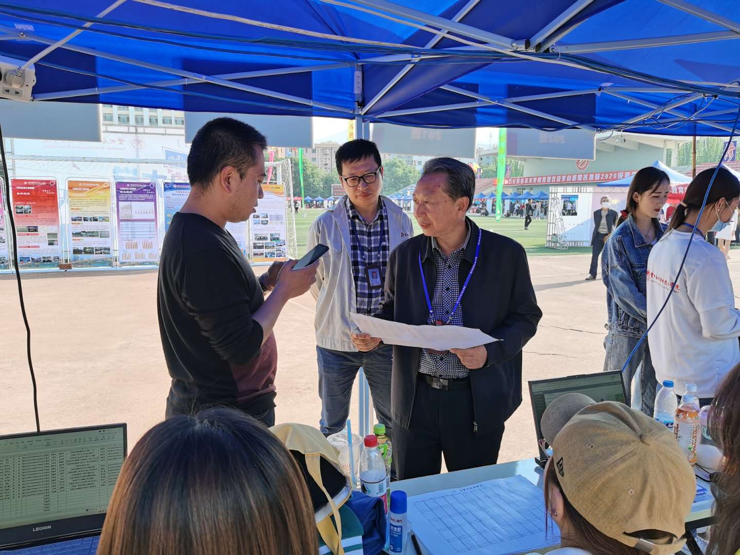 新生报到期间,新生班主任老师在迎新现场与新生、家长进行交流,为新生及家长提供引导和问题解答。