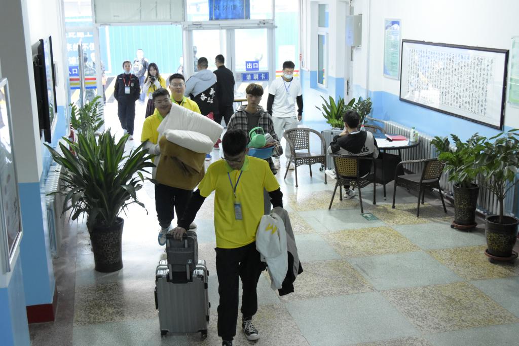 志愿者帮助新生搬运、寄存行李,指导新生现场注册、带领新生领取生活用品,从校门到公寓沿途的每个环节均有志愿者热情引导,悉心服务,每一个环节都分工协作、井然有序。