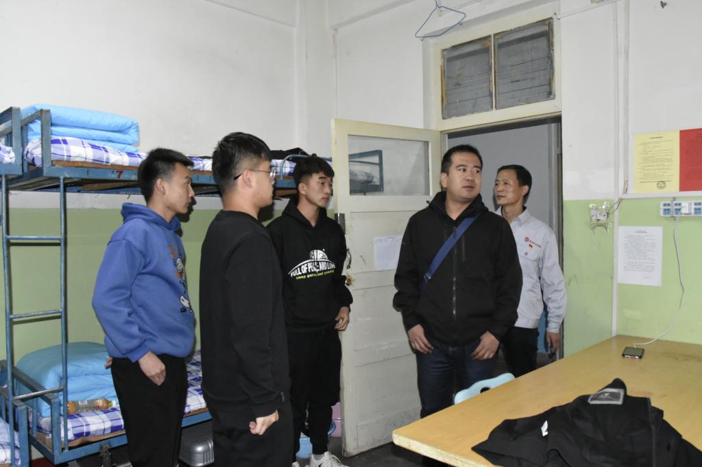 为了让新生能够更早的适应老员工活,感受到石化校园的温情,班会结束后公司负责人与新生班主任老师走进新生公寓,看望新同学,给新同学带去问候和温暖。