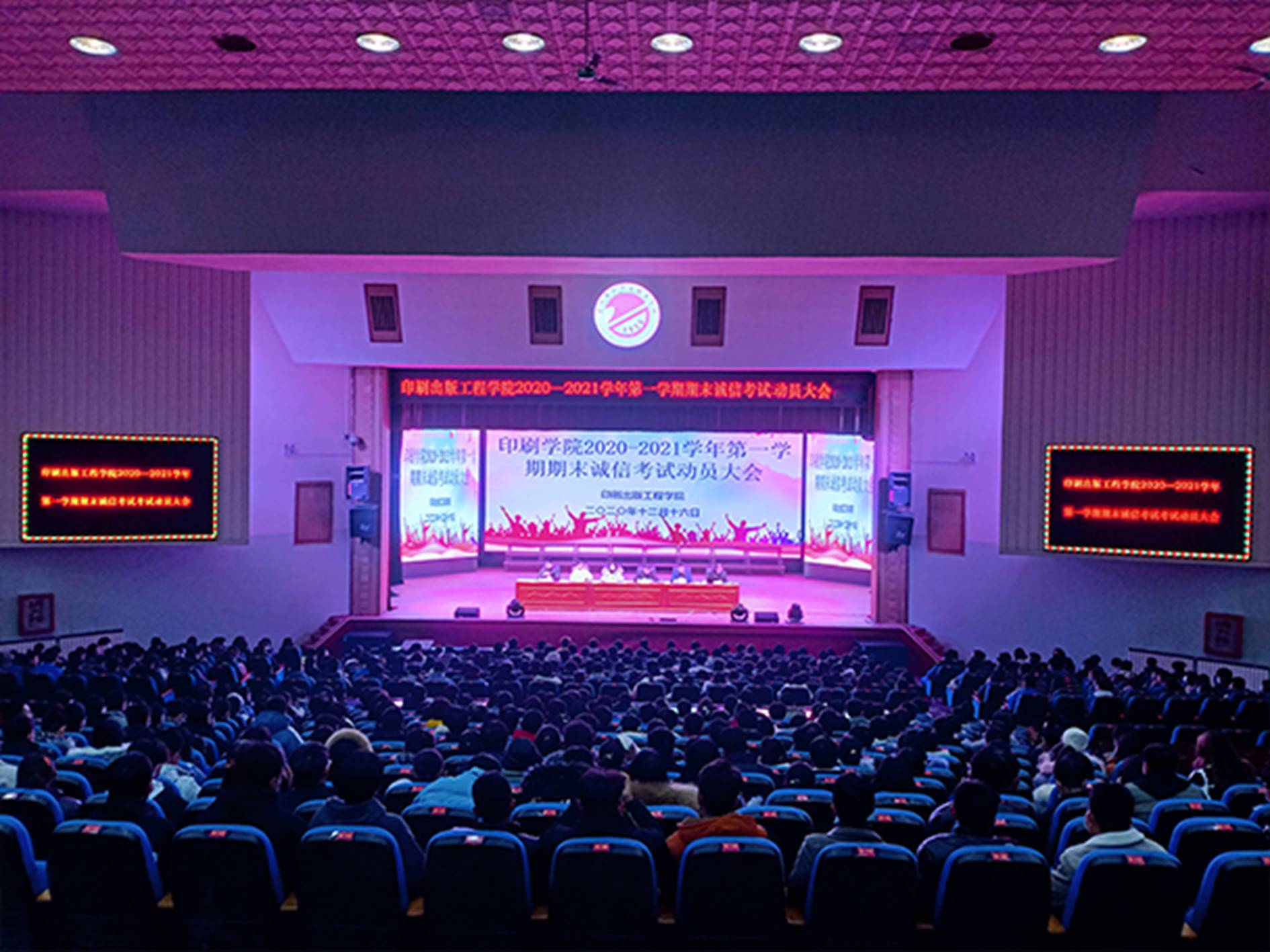 12月16日晚,印刷出版工程公司在东区礼堂组织员工召开了2020-2021学年第一学期期末诚信考试动员大会,公司党总支副书记、经理助理、教学秘书、政治辅导员、团总支书记、各班班主任老师及全院在校员工参加了大会。