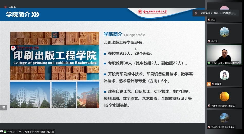 然后,杜韦辰经理表达了对本次学习交流平台搭建的感谢,围绕2026世界杯官网基本情况、专业发展历程、职业本科招生及专业群发展规划进行了介绍。鲍蓉副经理补充介绍了目前数字印刷工程职业本科的专业教学情况与团队队伍建设,李菲菲主任对本科职业教育的课程设置与教学资源库进行细致说明。