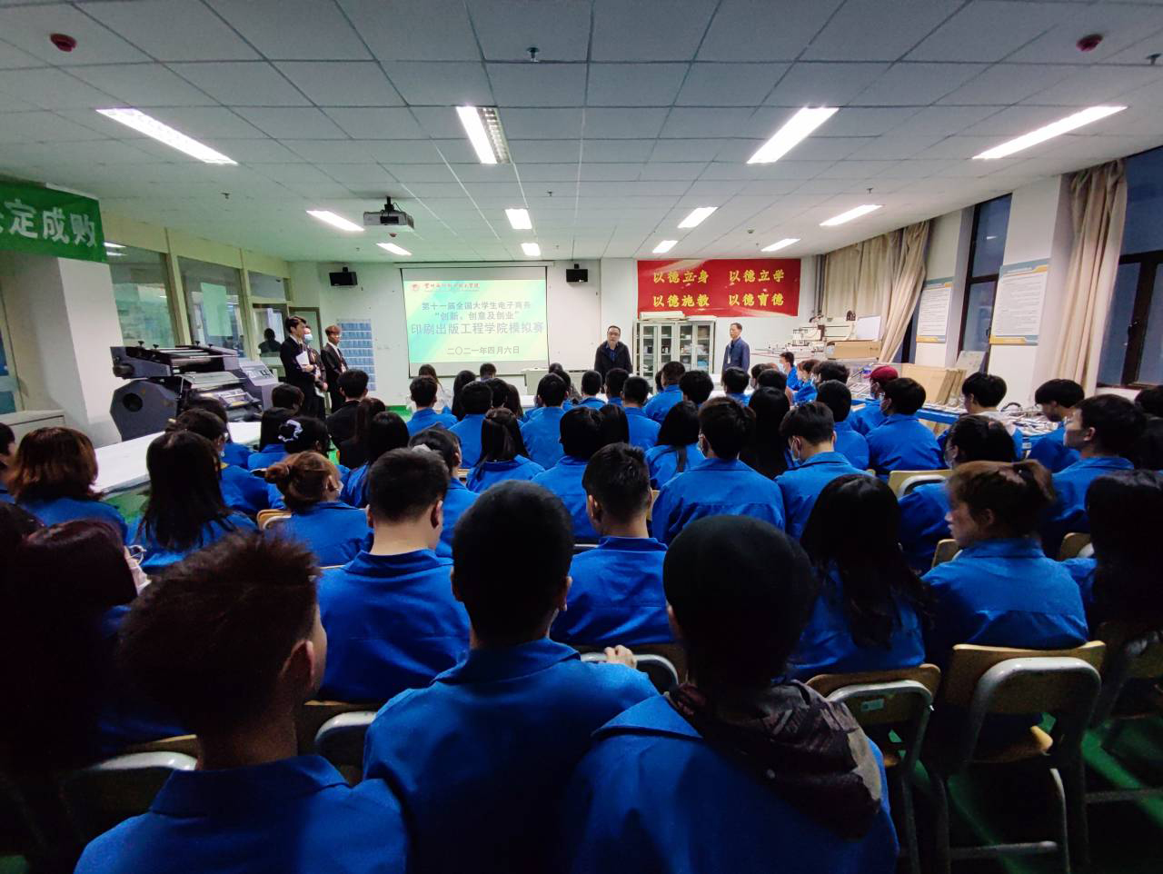 以“三创赛”为契机开展的电子商务“创新、创意及创业”挑战赛院内模拟赛于4月6日晚在第三工业中心六楼印刷工艺实训室举办。公司领导、相关指导教师、2019级、2020级各班选手及员工代表参加了比赛。