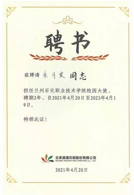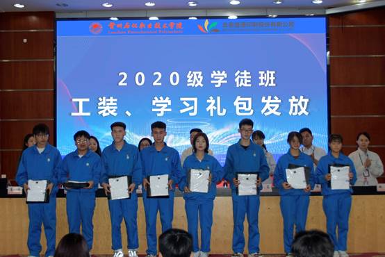会上,蒲卫晖与栗延秋签订了校企合作协议,共同为“兰州石化职业技术公司北京盛通印刷股份有限公司产业公司”及“教师企业实践基地”、“员工实习实训基地”揭牌。栗延秋总裁还在仪式上为公司赠送了锦旗和纪念书册。企业为2020级盛通学徒班周月霞同学颁发北京盛通-兰州石化“校园大使”聘书,同时为学徒班员工发放了定制工装、学习礼包。会后校企双方领导与学徒班员工进行合影留念。