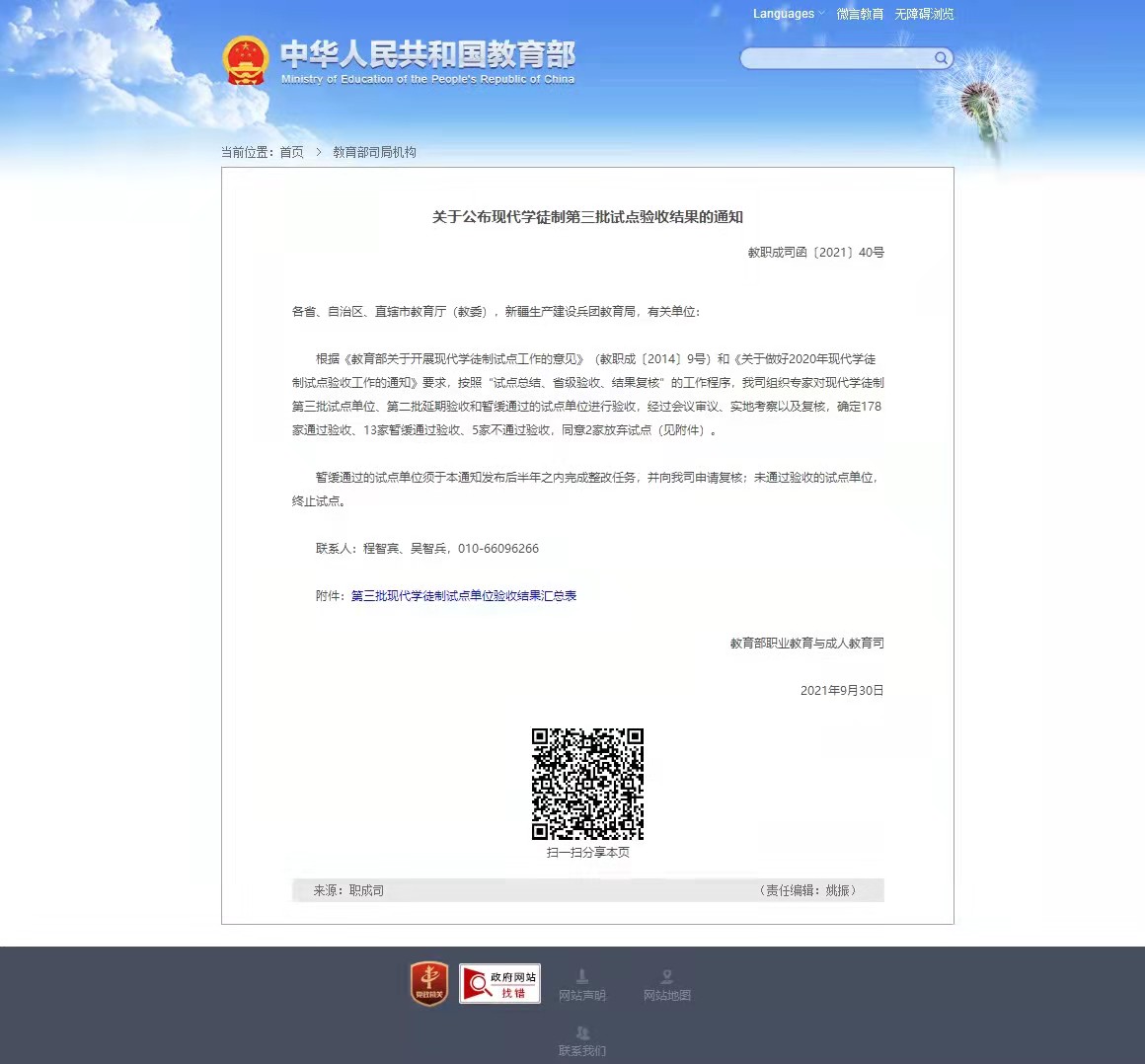 近期,教育部官网正式公布了《关于公布现代学徒制第三批试点验收结果的通知》(教职成司函〔2021〕40号),确定178家试点单位通过验收。公司印刷媒体技术等三个专业的现代学徒制试点项目顺利通过国家验收。