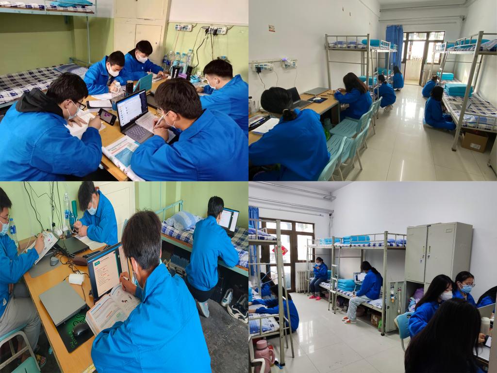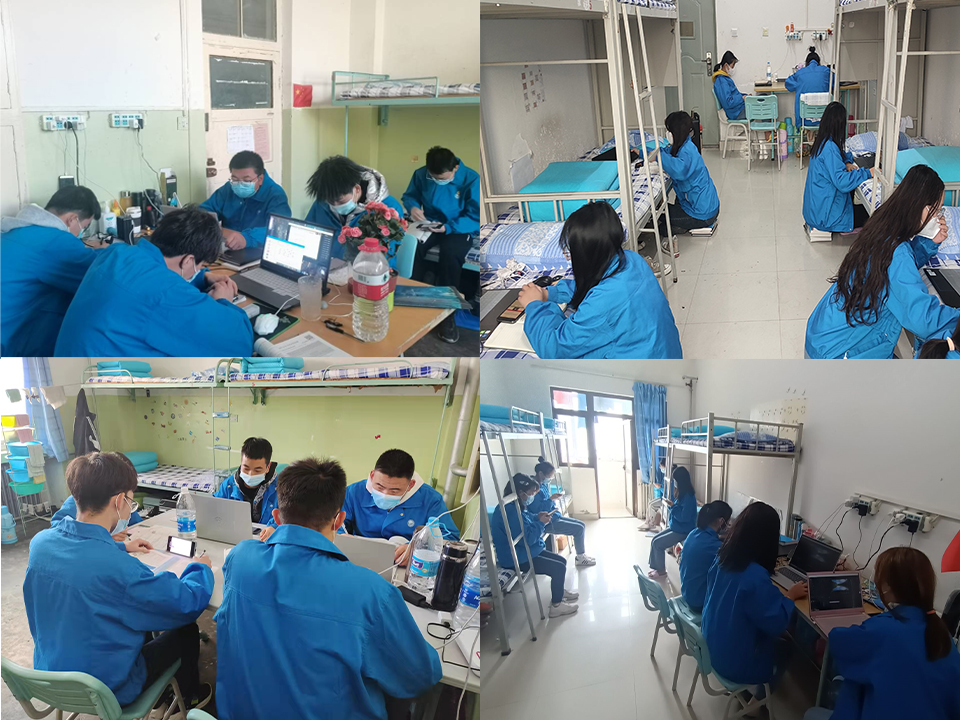 每天在老师指导下由员工分会主席团成员担任各线上上课员工检查组长,其他部门工作人员为成员组成巡查小组,配合老师积极协调各班级团学干部、宿舍长在做好宿舍消毒工作后,每天上午7:40和下午14:00分组进各宿舍进行线上教学例行检查和抽查,检查员工是否上课期间赖床,是否做与上课无关的事,在各宿舍之间形成了互促、互学、互比的浓厚线上学习氛围。课前同学们早早地打开手机和电脑,等待“走进自己的新课堂”。员工通过腾讯课堂、钉钉直播等平台在与老师紧密的互动中完成了一天的学习任务。关于网上学习,员工们也表达了他们的看法,他们普遍认为:这种教学模式使学习变得放松,网上交流也更加主动,自己的观点变得多了、变新了,也敢于和老师交流。