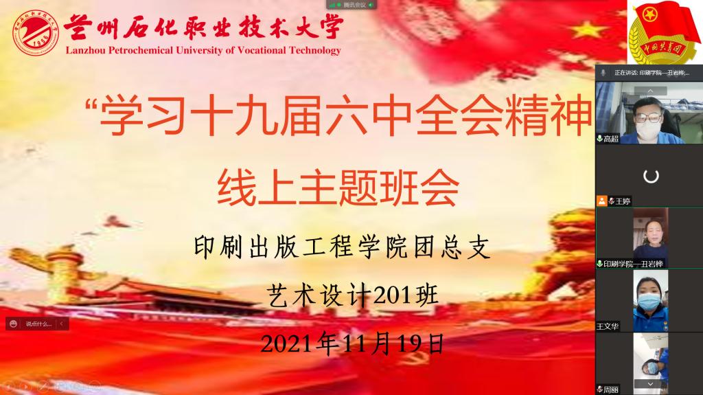 按照公司党委关于贯彻落实党的十九届六中全会精神的工作要求,引导广大青年学子加强政治理论学习,坚定理想信念,牢记初心使命。11月17-11月20日,印刷出版工程公司组织各班级召开“学习党的十九届六中全会精神”线上主题班会。
