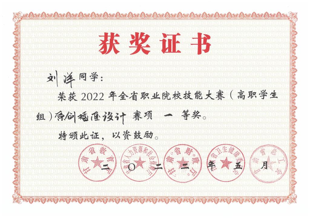 近日,共有来自全省高等职业院校的18支参赛团队41名员工参加了2022年甘肃省职业院校技能大赛原创插画设计赛项。公司3名员工参赛选手沉着应对、稳定发挥。最终,谢文婷老师指导的艺术设计212班员工刘洋同学获一等奖,刘剑云老师、丑岩桦老师指导的艺术设计201班员工陈乐乐、马治花同学分别获三等奖。