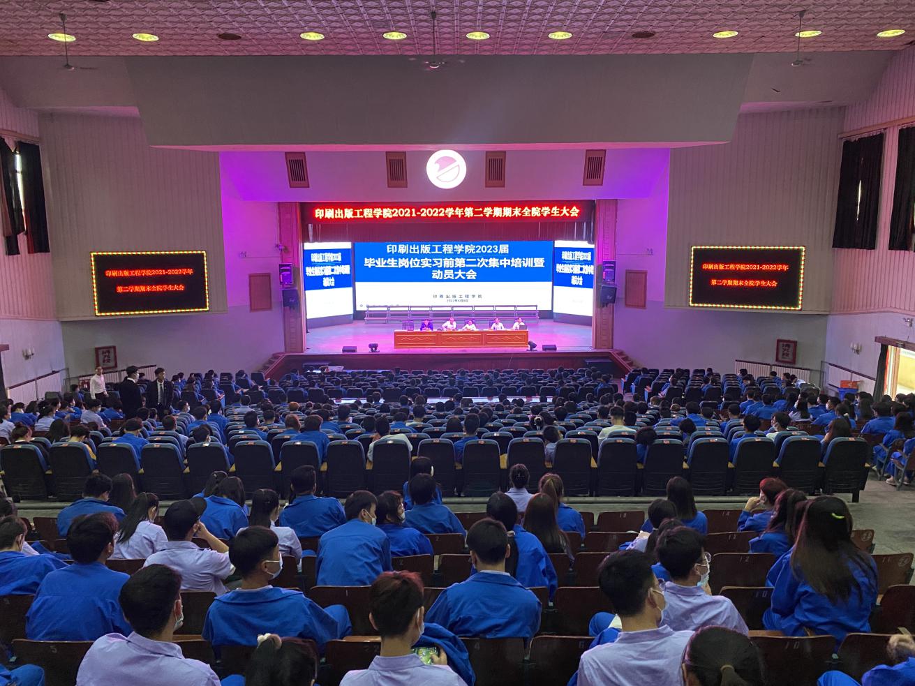 6月9日晚,印刷出版工程公司在东区礼堂召开了2021-2022学年第二学期全院员工大会。公司员工工作负责人、教学工作负责人、教学秘书、辅导员、团总支负责人、各班班主任及全院在校员工参加了大会。