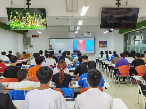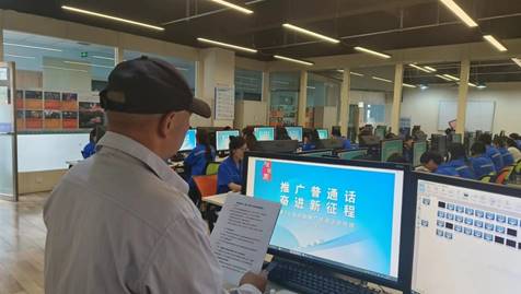 课堂上,任课教师在授课时投放宣传海报、讲解宣传标语、播放推普视频等方式向员工进行普通话推广。课堂外,在教学楼、宿舍楼张贴海报为员工营造规范普通话用语的氛围,保障推普育人工作的有效落实。