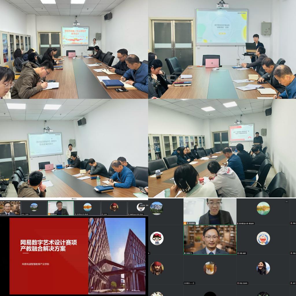 赵艳老师结合课程思政教育元素、从课程及专业特色挖掘思政元素等方面阐述了如何将课程思政融入专业课程的课前准备、课堂实施、课后提升等教学设计环节;孔令赟老师从专业特色、思政元素融入课程教学的必要性以及融入课程教学实践三方面探讨课程思政在《影视后期制作》课程中的融合与创新;王静老师以《游戏美术基础》为例,以参与互动式教学、线上线下结合式教学、合作项目式教学等不同形式融入思政元素,进一步增强游戏产品的文化特色,重构游戏与传统文化的共生与融合;网易产业公司业务总监李飞老师介绍了数字媒体产业现状及艺术设计赛项;梁永文老师介绍了“岗课赛证+思政融通”的专业人才培养体系,探索“岗课赛证+思政融通”的路径与方法,切实提高人才质量。