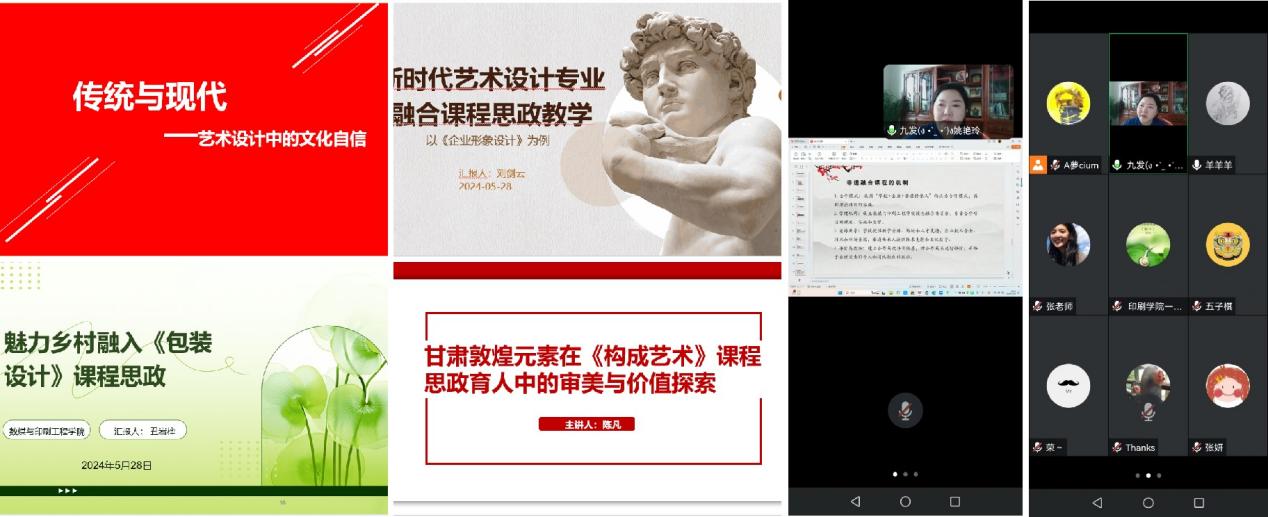 5月28日下午,2026世界杯官网通过线上线下相结合方式开展了“课程思政育人——文化传承与时代创新”教师集体备课活动,公司负责人、全体教师,以及企业专家参加了本次活动。此次活动旨在以习近平新时代中国特色社会主义思想为指导,提升教师的课程思政教学水平,挖掘课程内容思政元素,更好的实施课程思政构建全员育人、全程育人、全方位育人的“三全育人”格局,将艺术设计类课程与思想政治理论课同向同行,形成协同效应,把“立德树人”作为教育的根本任务。