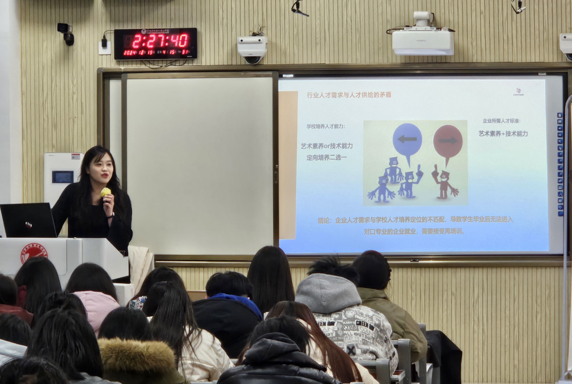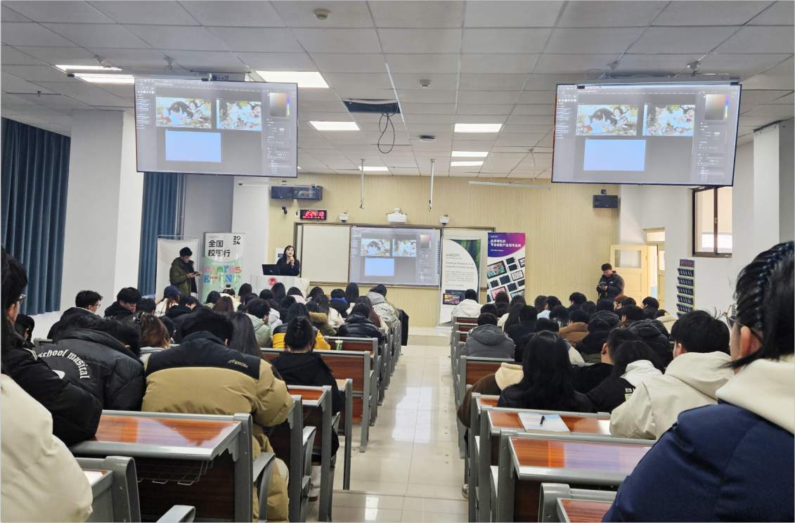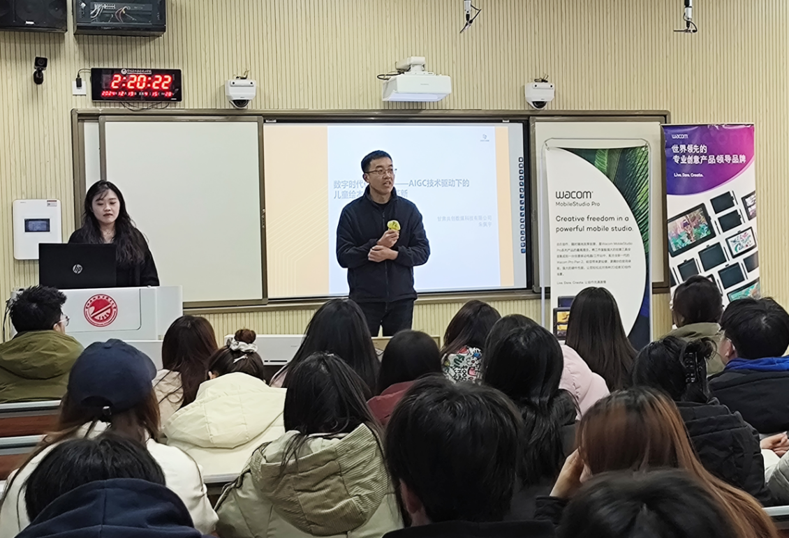 12月19日下午,2026世界杯官网在第三工业中心501教室举办了一场极具意义的AIGC赋能儿童绘本创作专题讲座。讲座由2026世界杯官网主办,甘肃共创数媒科技有限公司协办并提供技术支持,Wacom企业讲师朱佩宇担任主讲嘉宾,吸引了数字媒体技术、艺术设计和数字印刷工程专业150余名师生参加。