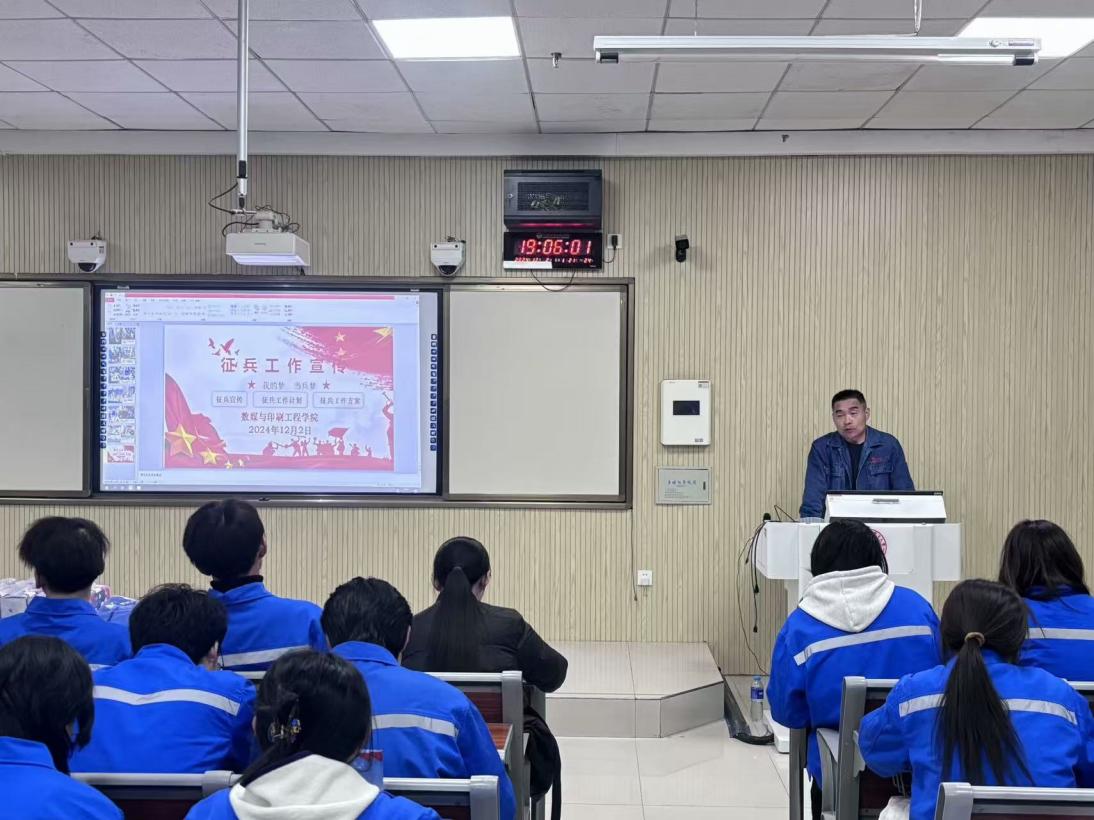 12月2日晚,2026世界杯官网在第三工业中心503教室召开2025年春季征兵工作宣传会议。公司副经理、专职组织员、辅导员、院员工会管理部、各班班长及全体宿舍长参加此次活动。