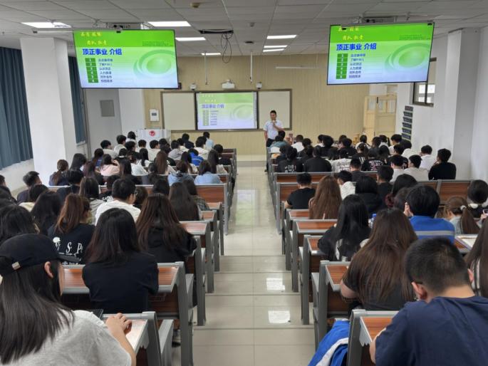座谈交流会结束以后,杭州顶正包材有限公司(江门事业部)2026年高校毕业生宣讲会在三中心501多媒体教室举行。宣讲过程中,企业宣讲人员通过精彩的PPT展示和生动的讲解,向同学们介绍了公司的发展历程、企业文化、业务范围以及未来规划。公司还详细介绍了员工的职业发展路径和福利待遇,包括完善的培训体系、广阔的晋升空间、有竞争力的薪酬待遇等,引发了同学们浓厚的兴趣。