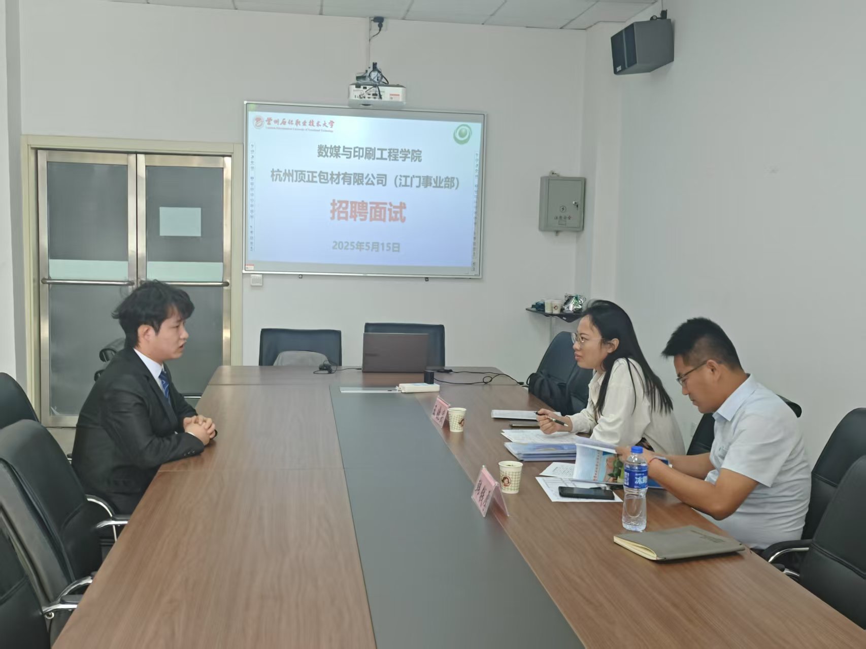 5月15日上午,企业在三中心六楼公司会议室组织对有意向的23级毕业生进行企业招聘面试。此次江门顶正包材有限公司走进公司,不仅为同学们提供了了解行业动态和企业需求的机会,也为公司与企业之间搭建了合作交流的平台,对促进公司的专业建设和人才培养具有重要意义。