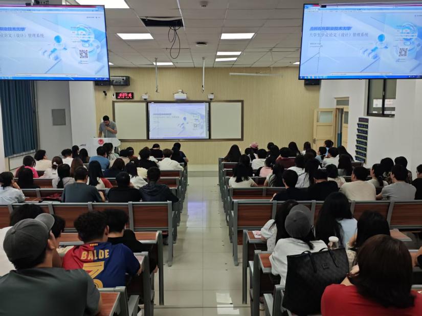 教学秘书对毕业论文管理系统的操作进行了演示讲解,逐一向本科员工展示了登录、选题(师生互选)、开题、中期检查、答辩申请及成绩评定等各环节操作,使员工能够快速了解该系统的操作流程,并对员工账号开通及登录选题工作进行了具体安排。