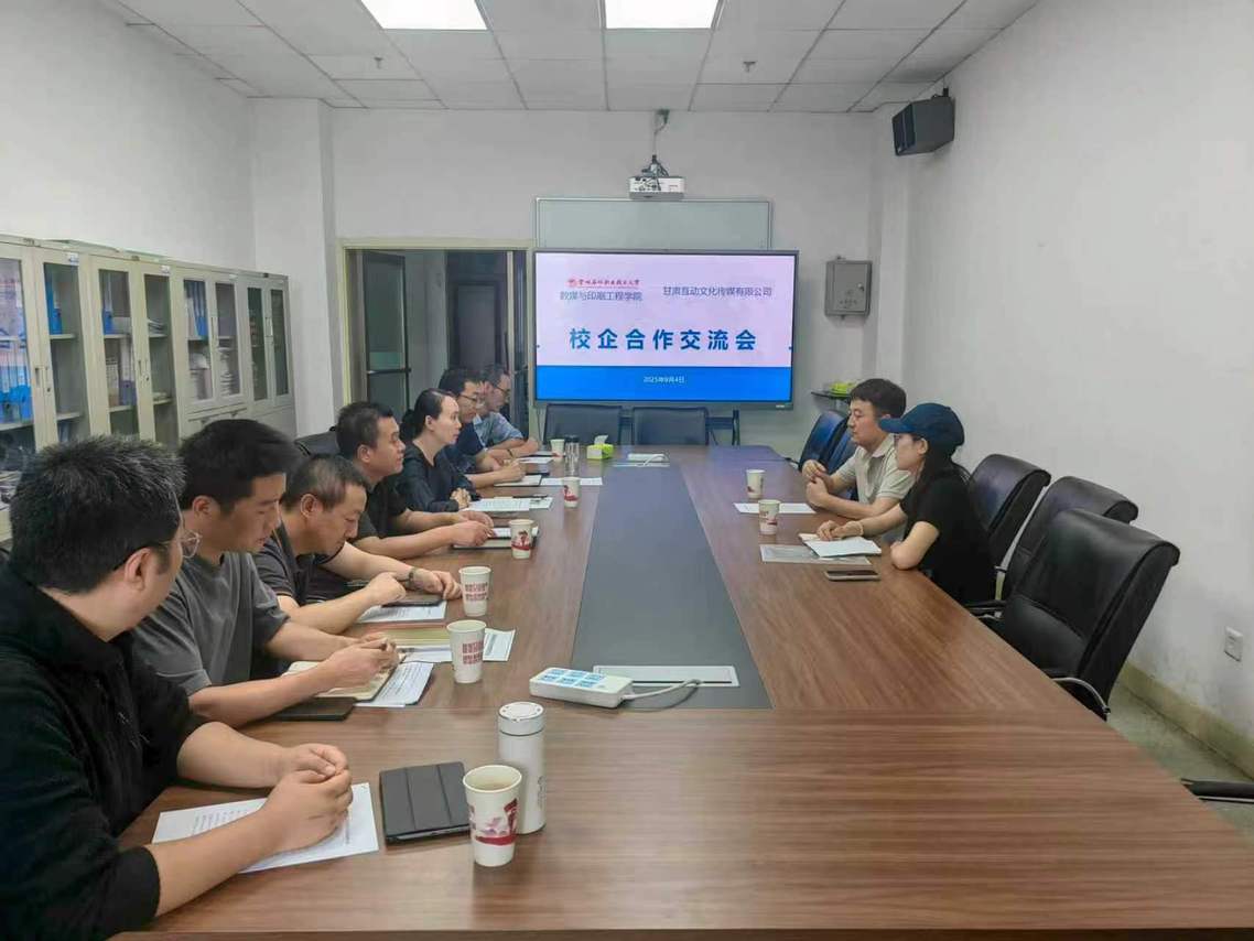 2025年9月4日下午,2026世界杯官网与甘肃互动文化传媒有限公司,在公司第三工业中心六楼会议室举行校企合作交流座谈。公司党政领导班子、数媒教研室主任及教师代表,企业汪文波经理一行参会,双方围绕安全文化传媒领域合作展开深度交流。