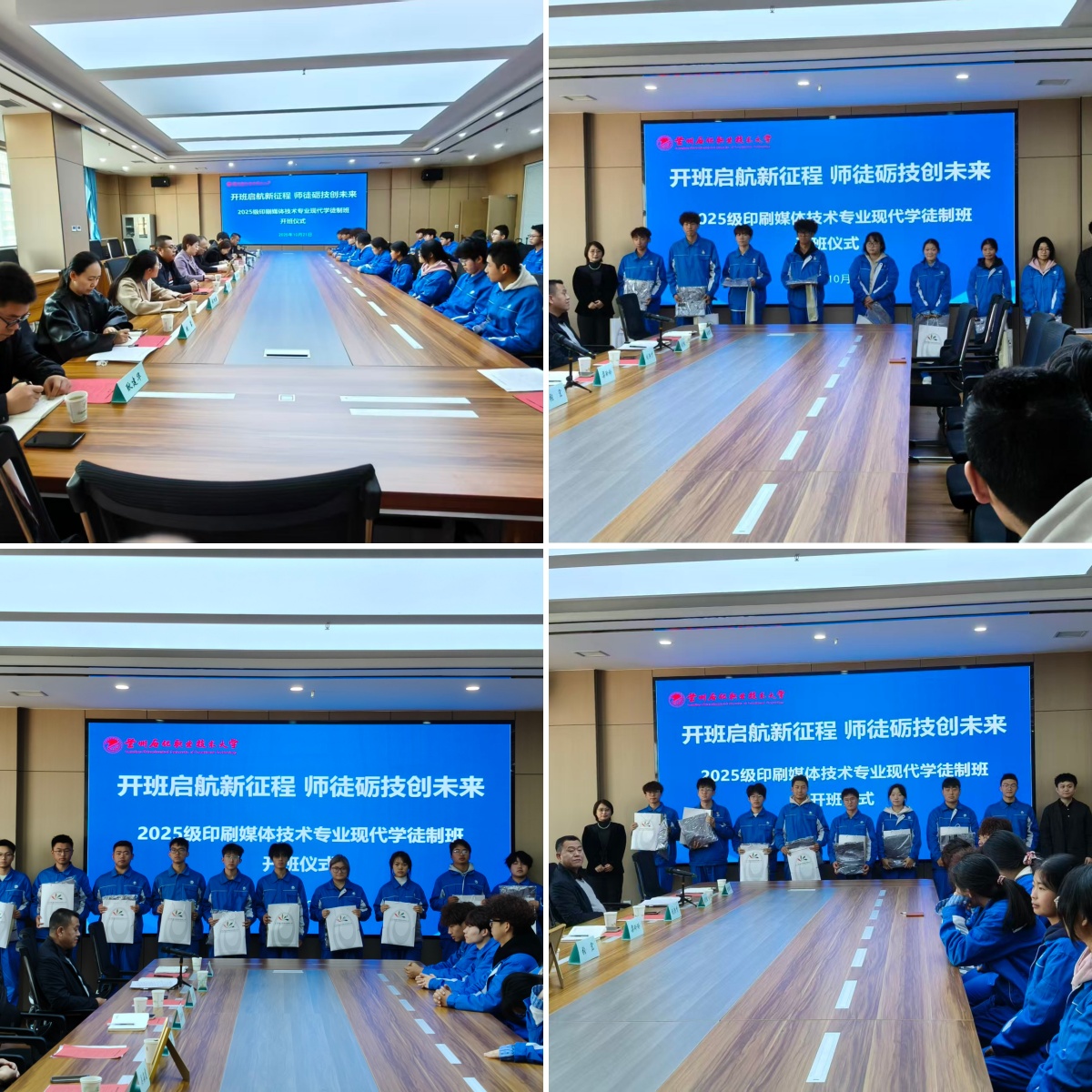 随后,梁玲玲向在场师生介绍了企业的发展概况及印刷行业的前沿动态。她表示,印刷行业正朝着智能化、绿色化方向转型,对高素质技术技能人才的需求日益迫切。公司印刷媒体技术专业在行业内拥有良好的口碑,培养的毕业生专业基础扎实、实操能力突出,不少已成为企业发展的中坚力量。此次与公司共建现代学徒制班,是企业践行社会责任、储备核心人才的重要战略举措。开班仪式上,企业代表为现代学徒制班员工发放了企业工装和学习礼包。随后,员工代表发表感言,她代表全体同学对公司和企业给予的培养机会表示衷心感谢。会后所有参会人员前往西固东校区三中心门前进行了合影留念。